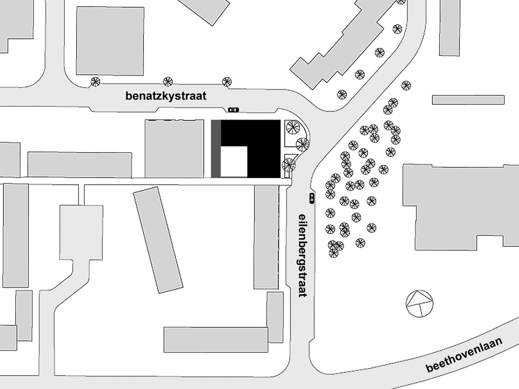 Om een verantwoorde overgang te maken naar de bestaande woningen aan de Eilenbergstraat wordt het bouwdeel aan de Eilenbergstraat uitgevoerd als een twee laags gebouw met een setback.